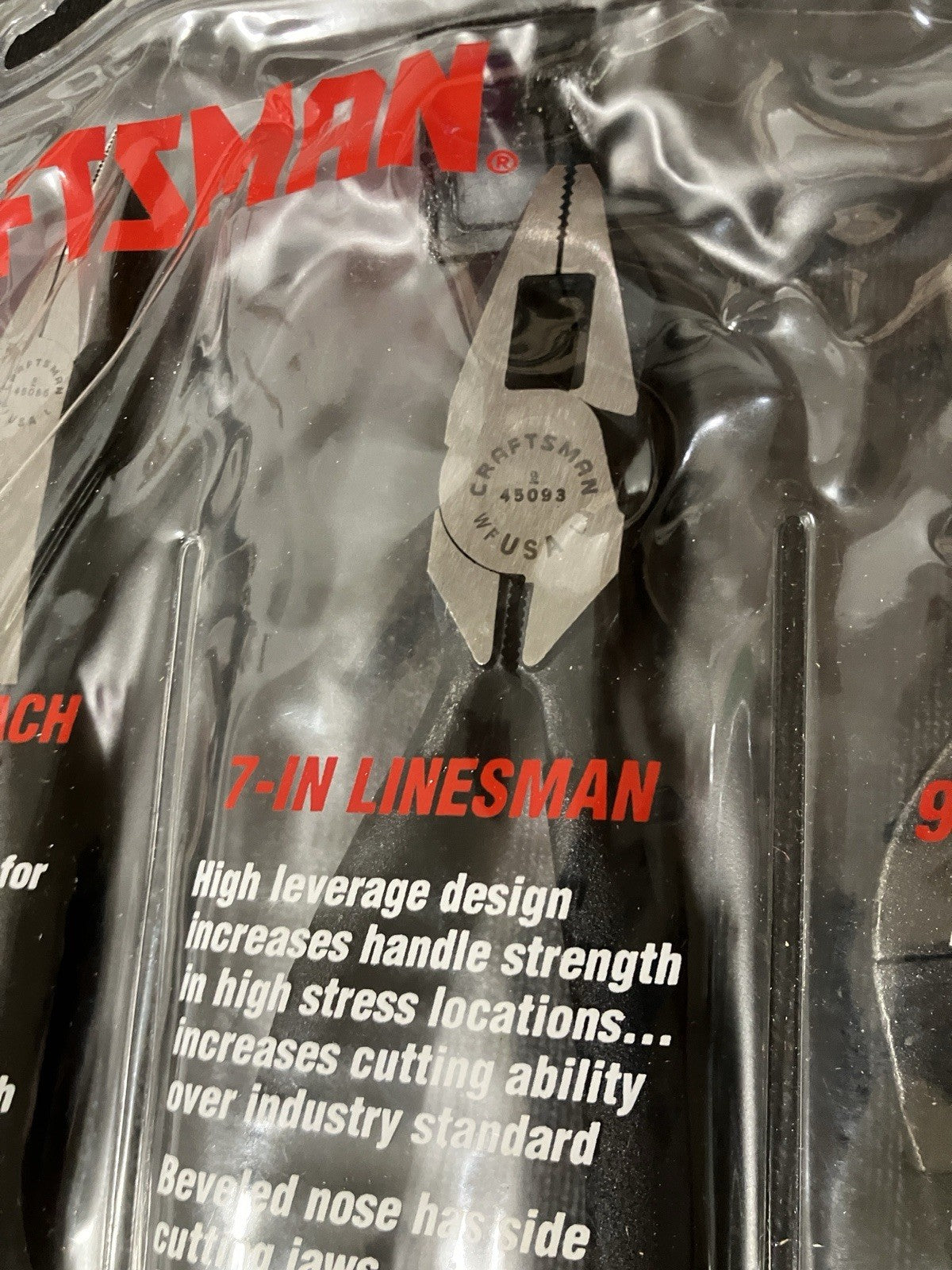 NOS Sears Craftsman 3 PC Plier Set 45313 USA Linesman, Long Reach, & Arc Joint