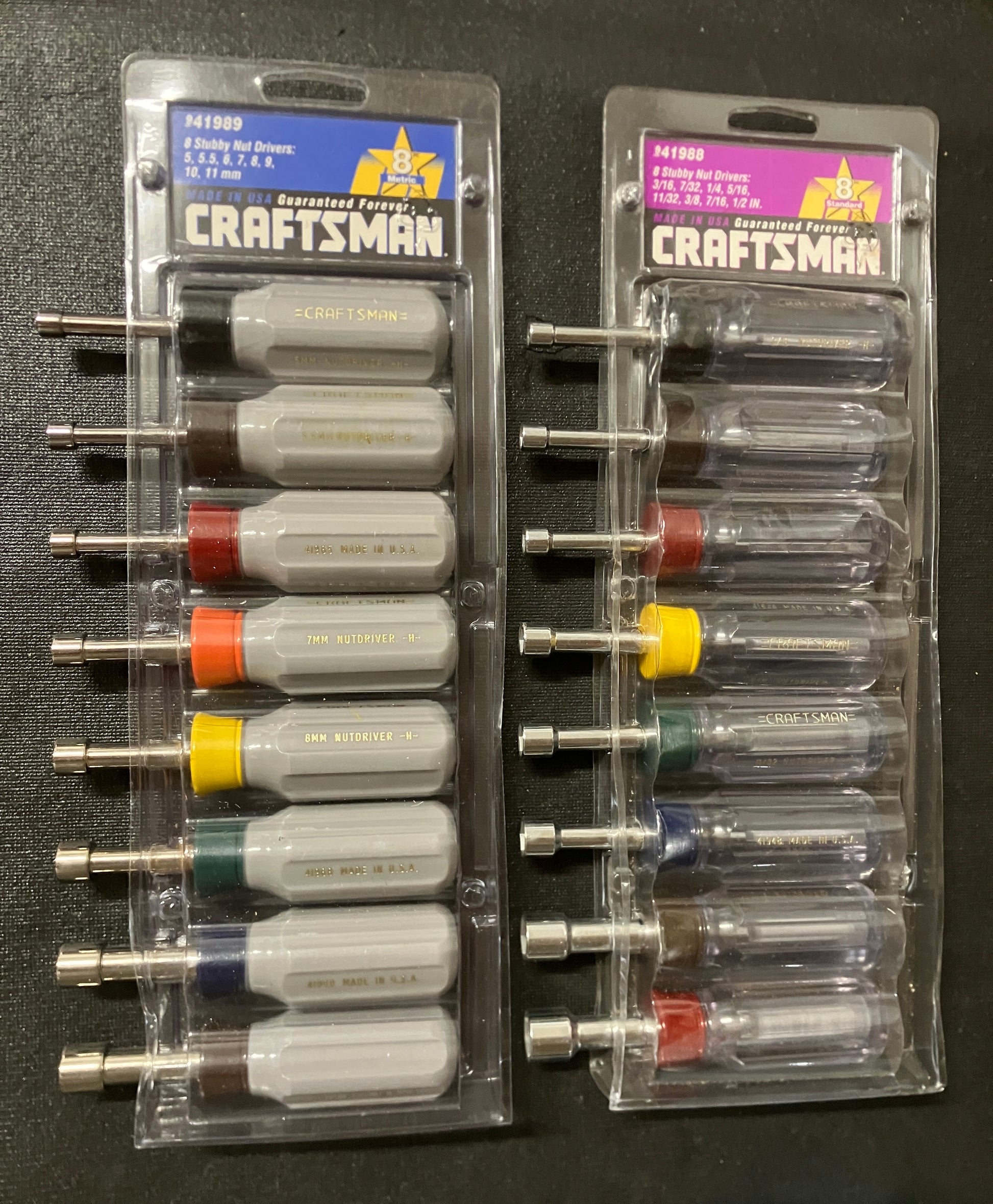 NOS Vintage Craftsman Stubby Nut Drivers SAE & Metric 41988 41989 USA