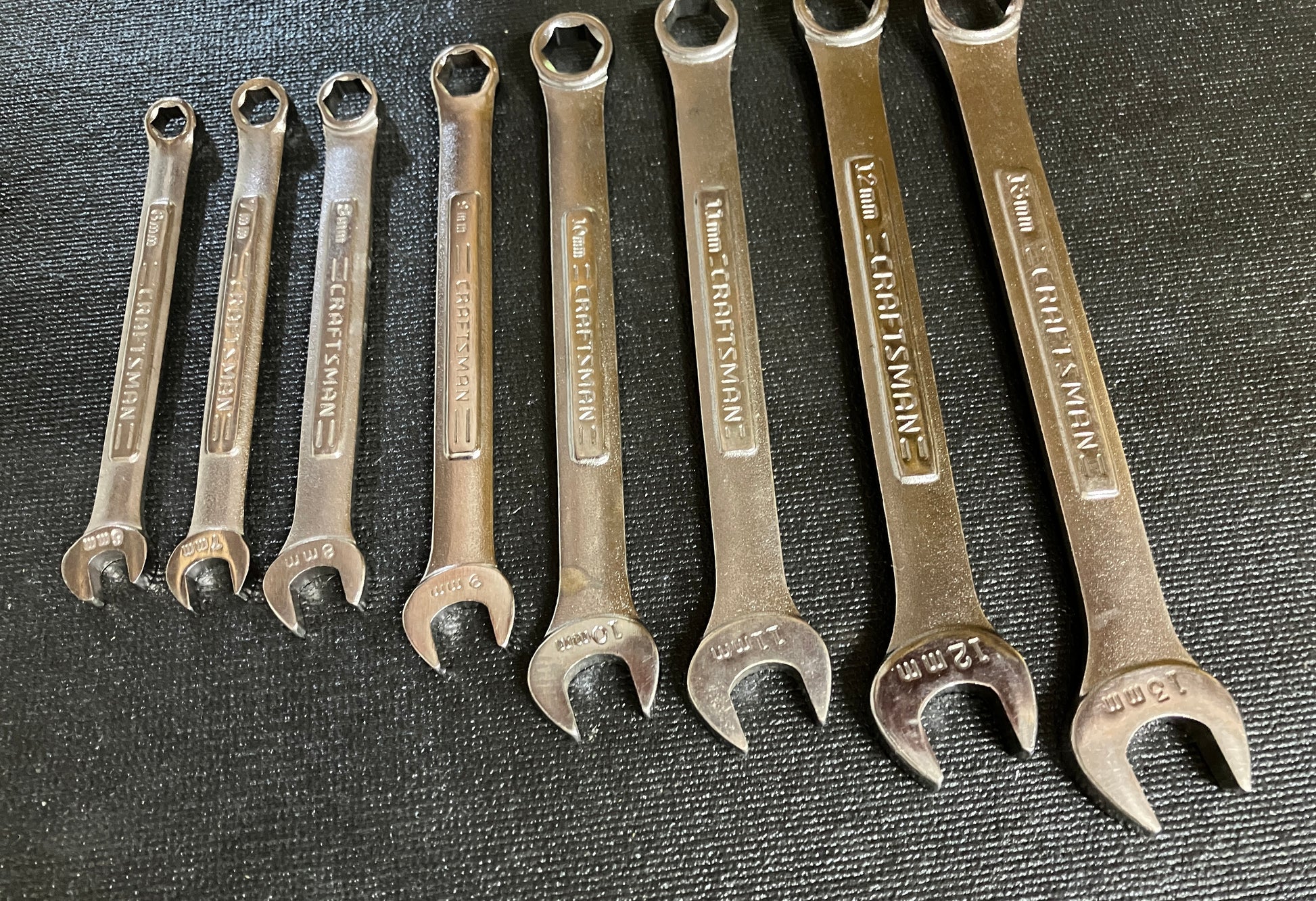 Complete metric 6 point in excellent used condition - includes every size ever made by Craftsman in metric 6 point combination wrenches - see photos. 6mm 42963 7mm 42964 8mm 42965 9mm 42966 10mm 42967 11mm 42968 12mm 42969 13mm 42970 14mm 42971 15mm 42972 16mm 42973 17mm 42974 18mm 42975 19mm 42976 |