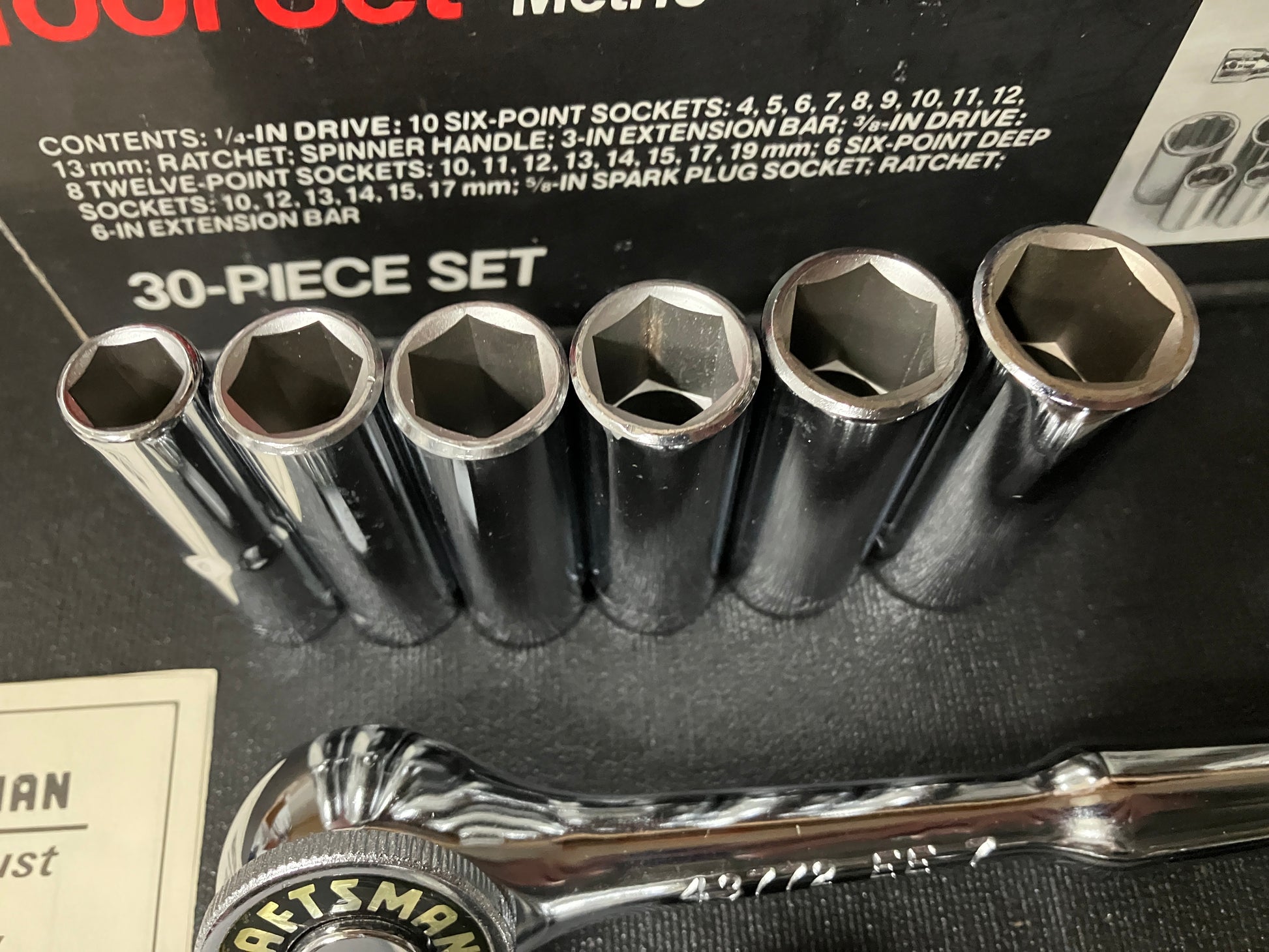 Vintage Craftsman 30pc Mechanics Set 33720 w/ Gold Label Ratchets - Like New